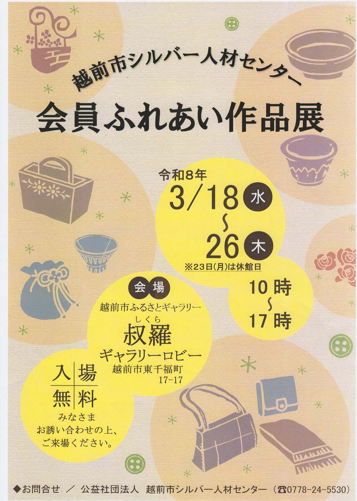 令和8年3月18日(水)~3月26日(木) 越前市シルバー人材センター会員ふれあい作品展