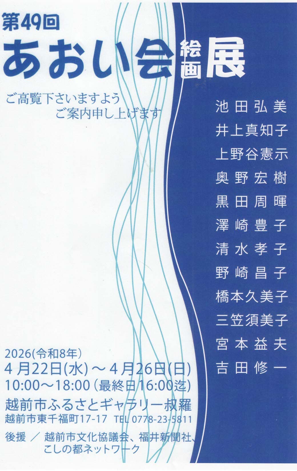 平素は越前市ふるさとギャラリー叔羅をご利用いただきありがとうございます。